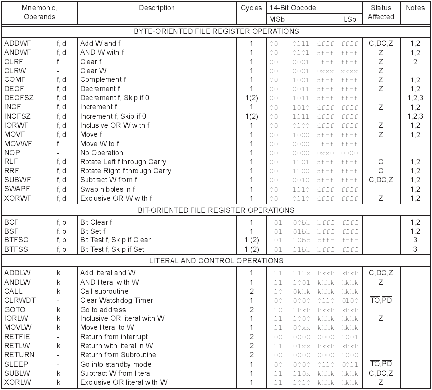 PIC instruction set summary