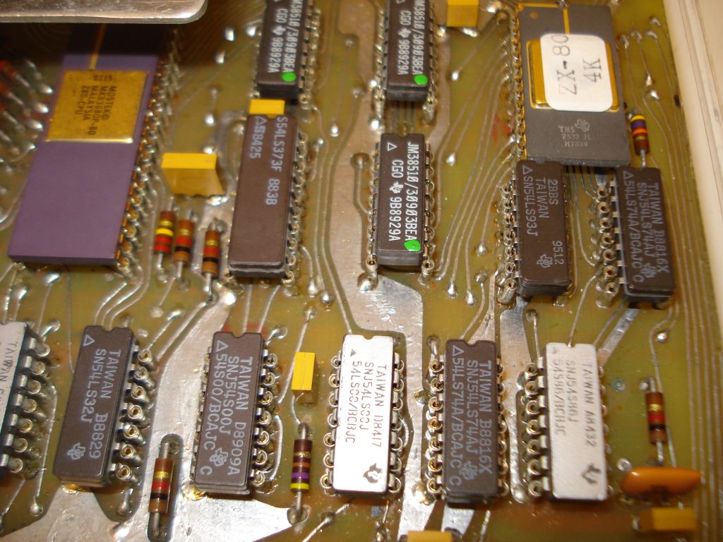 The parts placement can be seen from the component layout but it helped me to have a real ZX80 to compare. If you do not have one, here are two photos that can help you. This one is Grant Searle's ZX80 version and this one is my version.