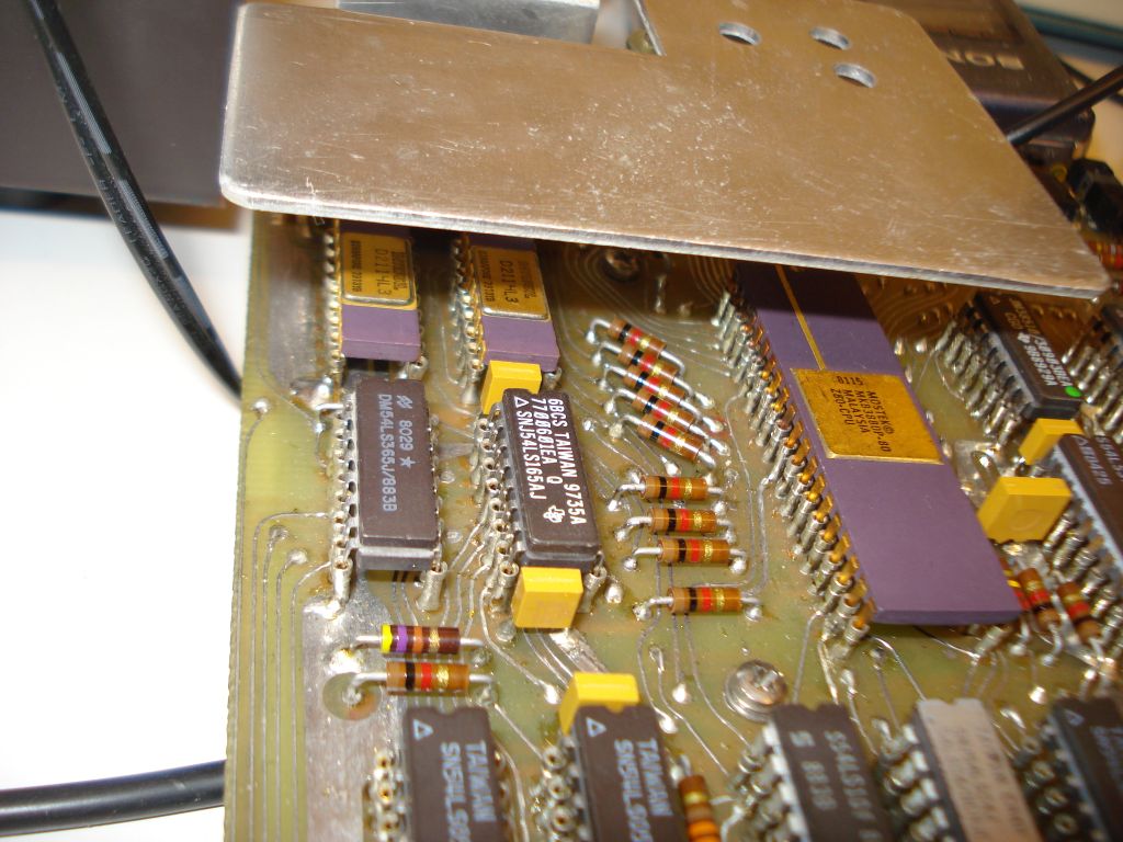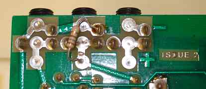 Internal 1K ram in place. This shows how the chip socket pins are soldered. On the right, a typical example of a soldered resistor is shown.