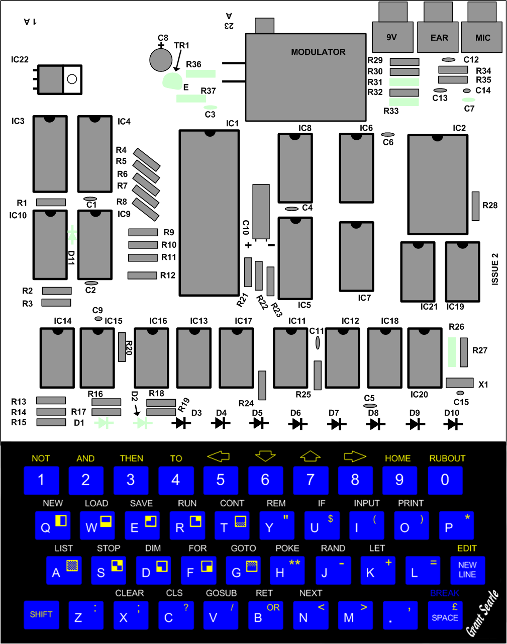 As I went through the component soldering process and having an original ZX80 side by side, I realized that some of the components in Grant Searle's component list are missing or are not correct values. They appear on the component layout though. Below is the corrected complete list of components, including the military equivalents I have used.