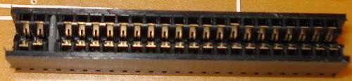 The original RAM pack uses a connector with long pins. These connectors are obsolete, so I have decided to use an ISA bus connector with short pins, that has been cut accordingly to fit the ZX80 bus. This connector fits right onto the PCB in contrast with the original connector that stands a few cm above the PCB. This makes the RAM pack difficult to fit into a boxed ZX80, but it makes no difference if fit into a bare ZX80 PCB.